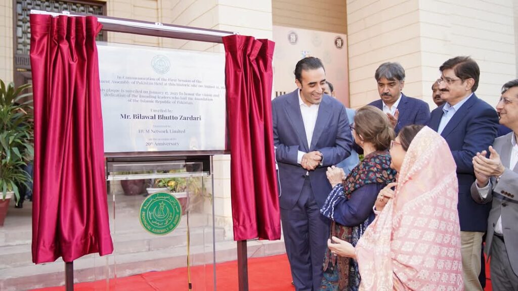 Karachi: Chairman Pakistan Peoples Party (PPP), Bilawal Bhutto Zardari, emphasized the importance of culture and politics in shaping a nation’s identity and progress. Speaking at a ceremony at the Sindh Assembly to unveil a commemorative plaque for Pakistan’s first Constituent Assembly session, he highlighted that true strength lies not in weapons but in the unity of politics and cultural heritage.