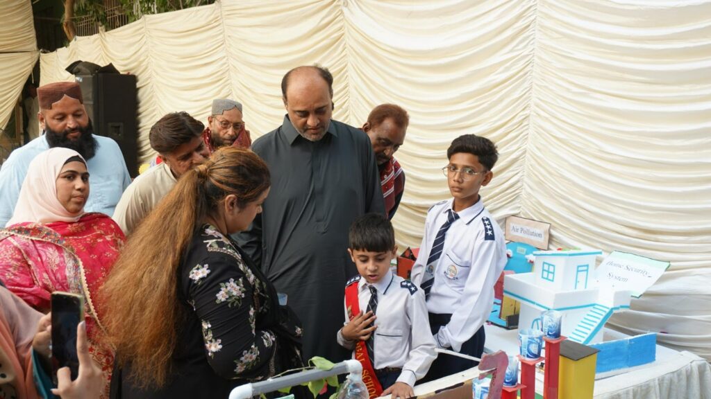 The school principal, Ms. Tahira Jahangir, welcomed the Deputy Mayor with a bouquet and traditional Ajrak, symbolizing Sindh’s rich cultural heritage. She reiterated the school’s commitment to fostering scientific awareness through engaging academic activities.