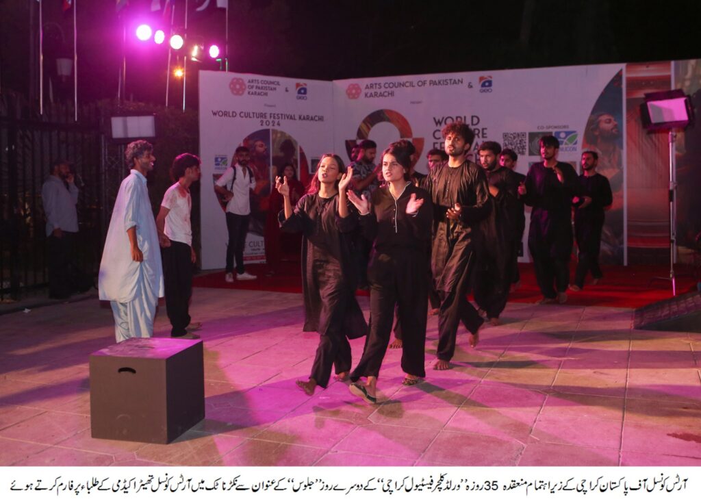 On the second day, the play “Jaloos,” written by Badal Sarkar, was performed by students of the Arts Council’s Theater Academy. The play focuses on societal injustices and political resistance. It captivated the audience with strong performances. Additionally, students from the Music Academy also mesmerized the crowd with their musical talents.
