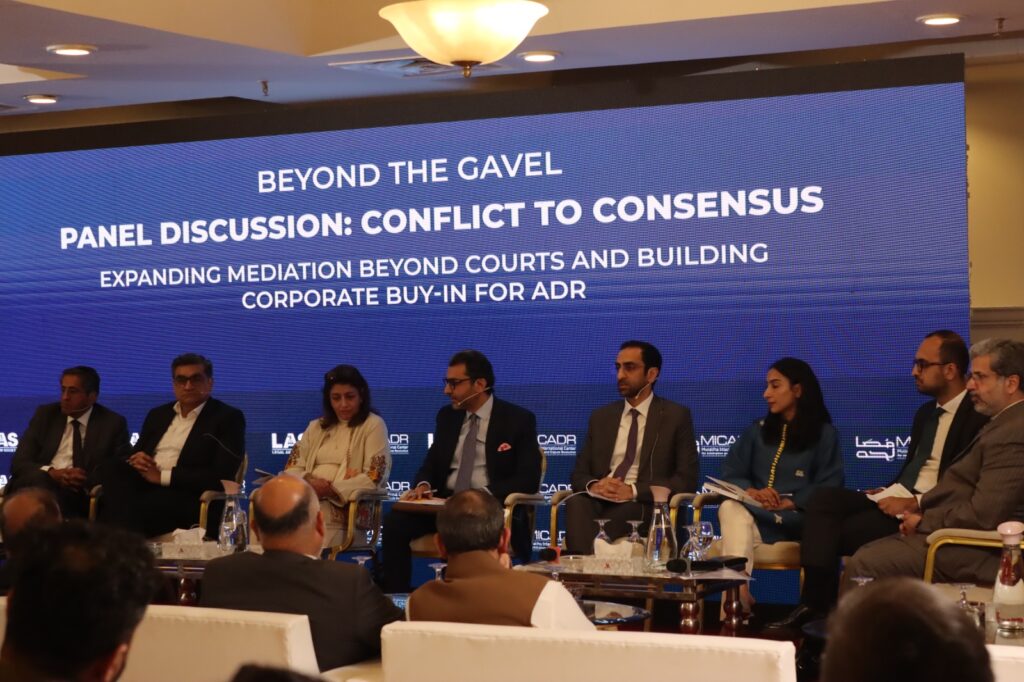 Notable panelists included Haider Waheed (HWP Law), Arshad Tayebaly (Mohsin Tayebaly & Co.), Dr. Huma Baqai (MITE), Jahanzeb Awan (Haidermota & Co.), Alizeh Bashir (Kabraji & Talibuddin), Mayhar Kazi (RIAA Barker Gillette), Ali Almani (Fazle Ghani & Co.), and Farid Alam (AKD Securities). They addressed Pakistan’s judicial backlog of 2.6 million cases. They also discussed ADR’s role in large infrastructure projects and the need for regulatory reforms to mainstream mediation.