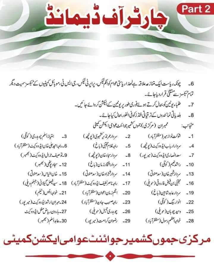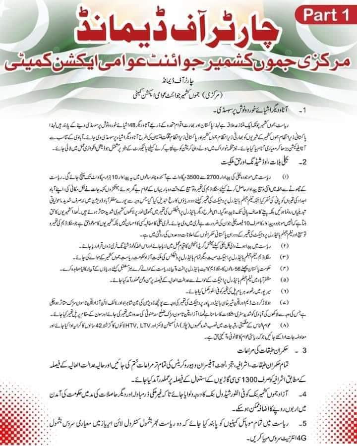 The JKJAAC is demanding subsidised electricity and wheat at rates equal to other provinces, along with curbing privileges of lawmakers.