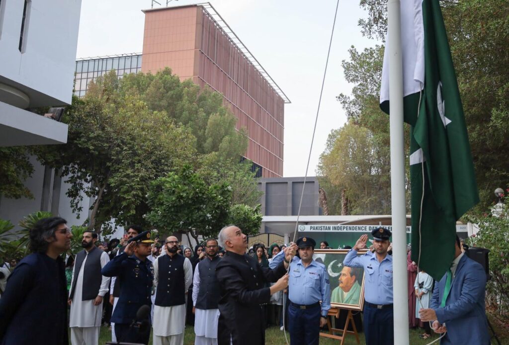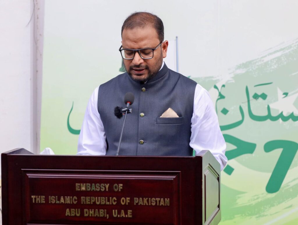 Abu Dhabi: The Embassy of Pakistan in Abu Dhabi marked Pakistan’s 78th Independence Day with a flag-hoisting ceremony brimming with national zeal and community spirit. A large number of Pakistani expatriates, along with their families, gathered to celebrate the historic occasion.