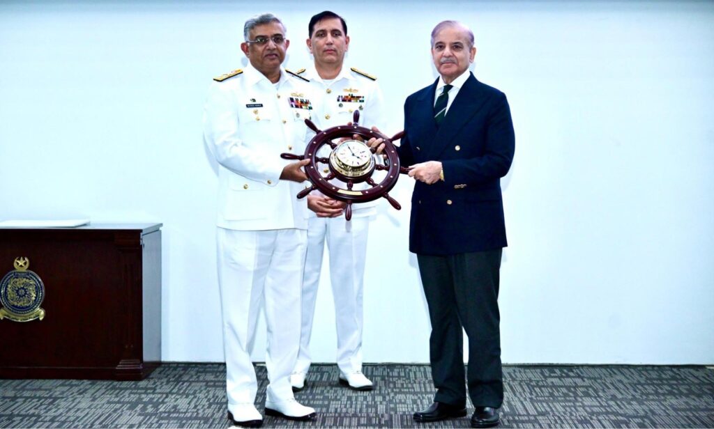 Upon his arrival at the PN War College, PM Shahbaz Sharif was received by Admiral Naveed Ashraf, Chief of the Naval Staff. In his welcome address, Rear Admiral Azhar Mahmood, Commandant of the Pakistan Navy War College, outlined the workshop’s agenda. During the event, a panel of participants presented recommendations for a National Maritime Policy, analyzing the maritime environment and its impact on security and economic growth while proposing strategic measures for future challenges.