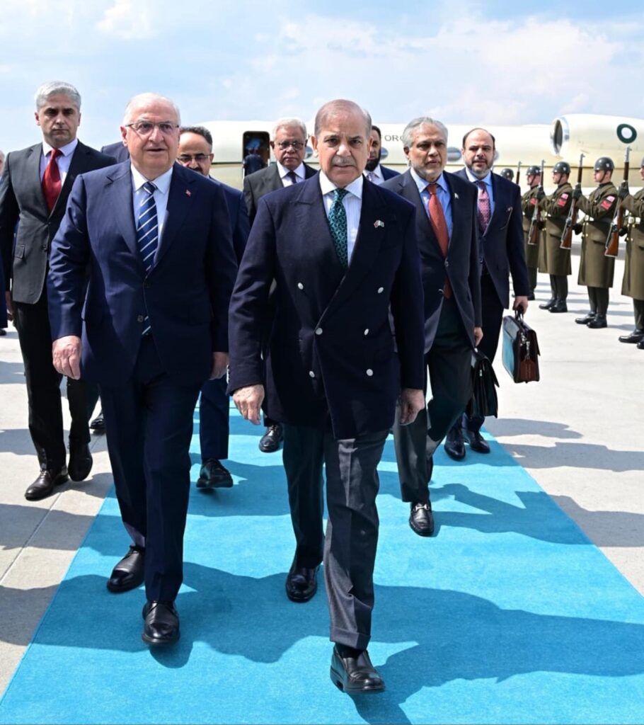Upon his arrival at Esenboga Airport in Ankara, the prime minister was warmly received by Turkish Minister of Defense Yasar Guler, Deputy Governor of Ankara Zafer Orhan, President of the Pakistan-Turkiye Cultural Association Burhan Kayaturk, Pakistan’s Ambassador to Turkiye Yousaf Junaid, senior Turkish government officials, and members of the Pakistani diplomatic mission based in Ankara.