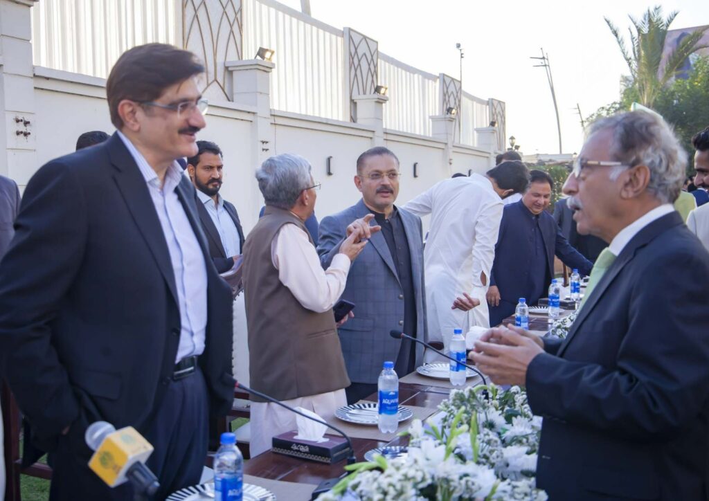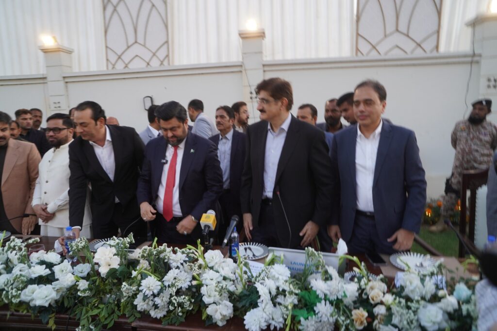 The event, organized by the Federation of Pakistan Chambers of Commerce & Industry (FPCCI), was attended by Sindh Governor M. Kamran Tissori, FPCCI President Atif Ikram Sheikh, Senior Vice President Saquib Fayyaz, diplomats, consuls general, commercial attachés, and representatives from the public and private sectors. Senior Minister for Information Sharjeel Memon, Minister for Planning & Development Nasir Shah, and Minister for Home Affairs Ziaul Hassan Lajar also accompanied the CM.