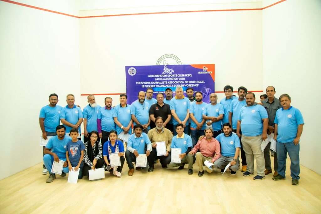 SJAS President Mahmood Riaz highlighted the purpose of the workshop, stating that it was designed to train emerging journalists in the technical rules and reporting standards of squash. Renowned squash coach Naveed Alam delivered an informative lecture, explaining scoring systems and other key aspects of the game.