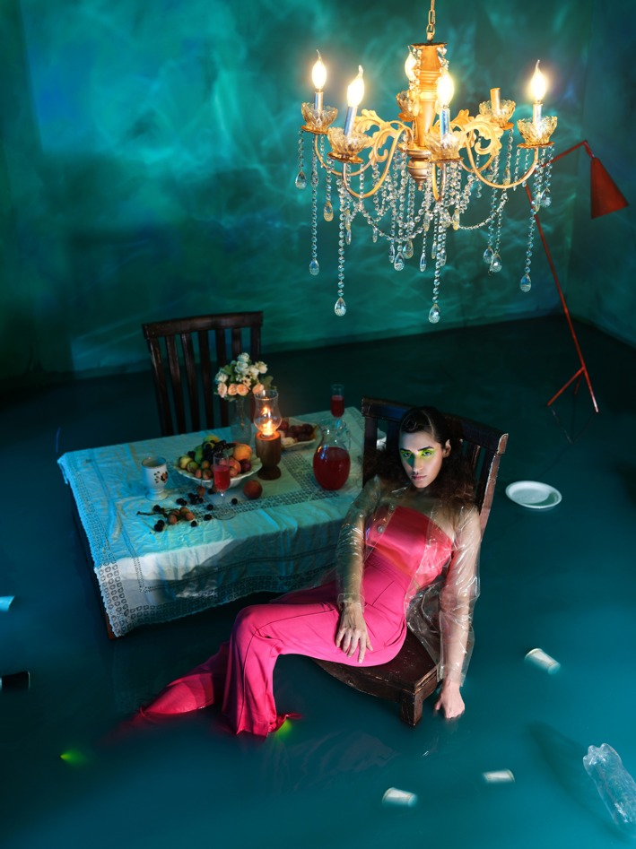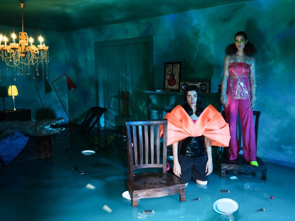 Following successful sustainable fashion shows in the UK, a flash mob in Islamabad, and climate change documentaries, Syed Qazzafi has launched a powerful new photo shoot. The campaign, titled “Sinking into Sustainability,” visually represents the climate crisis. The photoshoot features a room cluttered with plastic waste and designed to look partially submerged. Models Abeer Asad and Zara Ahmed wear high-fashion, reusable outfits that highlight the urgent need for environmental responsibility. The striking images, captured by Muhammad Husnain Mehmood (MHM), are complemented by Ahmed Shah’s art direction, which creates a stark, gloomy atmosphere. The fashion designer is Ibraheem Rayeen, with hair and makeup by Saleha Mehmood and Fatima Saeed, and coordination by Maryem.