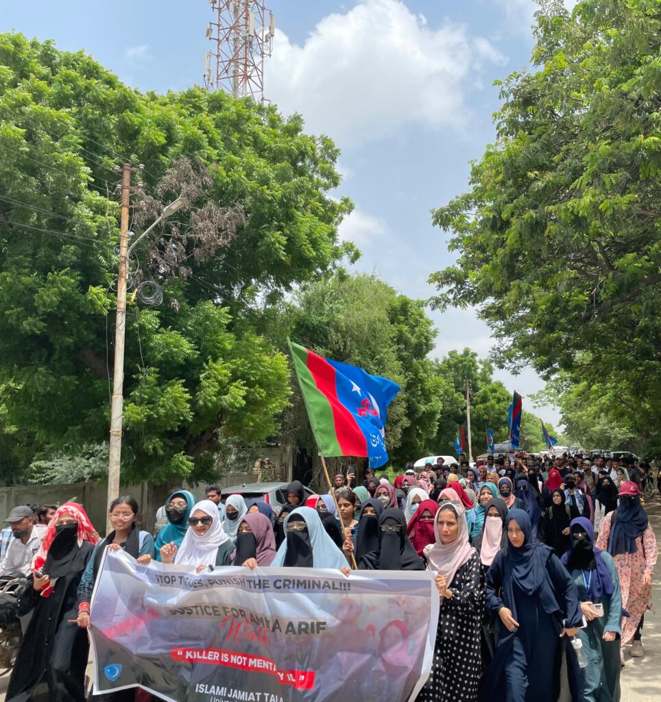 Prominent attendees at the Justice Walk included Barrister Uzair Ghori, the lawyer representing the deceased; Ms. Qurat-ul-Ain, President of Soch Aurat Human Rights Council; Dr. Alia Zahid Bhatti, a lecturer at the University of Karachi; and Brother Kamran Sultan Ghani, Nazim of Islami Jamiat Talaba, University of Karachi.