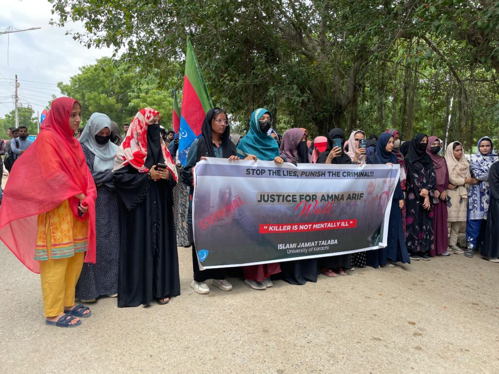 Karachi: Islami Jamiat Talaba at the University of Karachi held a “Justice Walk for Amna Arif” today, attracting significant participation from students and faculty members. The walk aimed to demand justice for Amna Arif and call for the immediate punishment of the perpetrator.