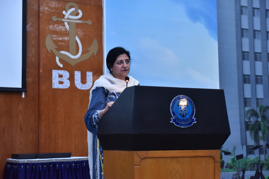 To honor her participation, Vice Admiral (R) Ather Mukhtar presented a memento to Chief Guest Prof. Dr. Jahan Ara Hasan as a token of appreciation.