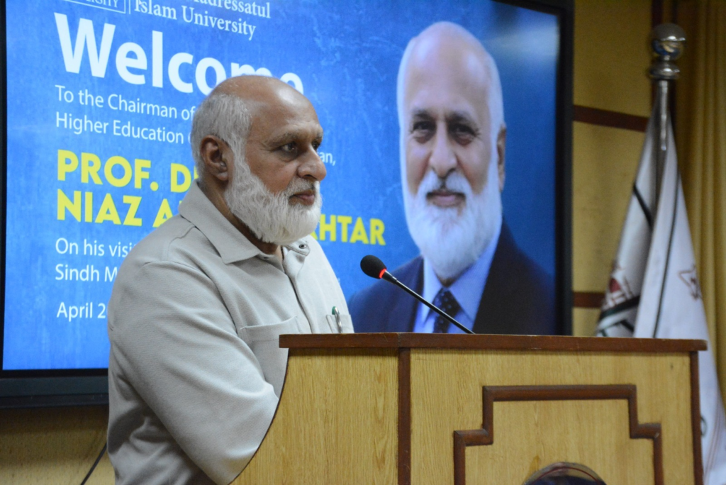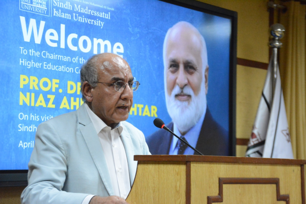 Speaking on the historical role of Sindh Madressatul Islam University, Dr. Niaz Ahmed Akhtar said, being the alma mater of the Father of the Nation, Quaid-e-Azam Muhammad Ali Jinnah, this is the national institution of the country. He said that he should have visited this historical institution earlier, but today he feels proud to visit it. Praising the vice chancellor of SMIU, Dr. Mujeeb Sahrai, the chairman of HEC Pakistan, said that he has contributed a lot towards SMIU’s betterment and quality education, which is commendable work.