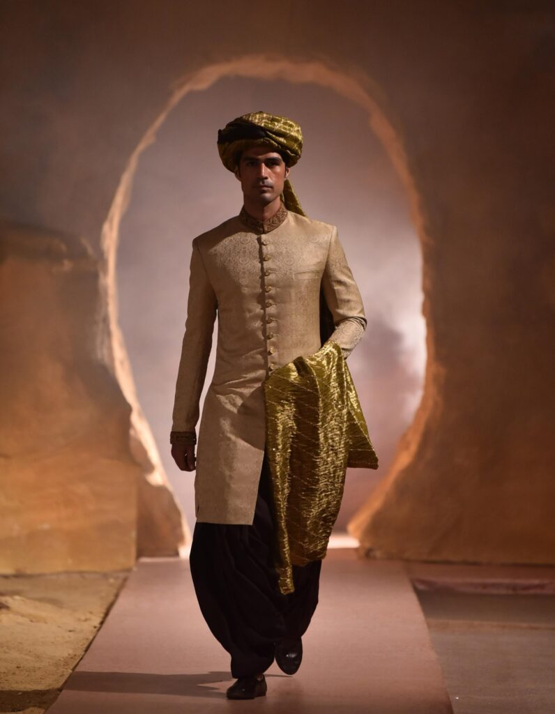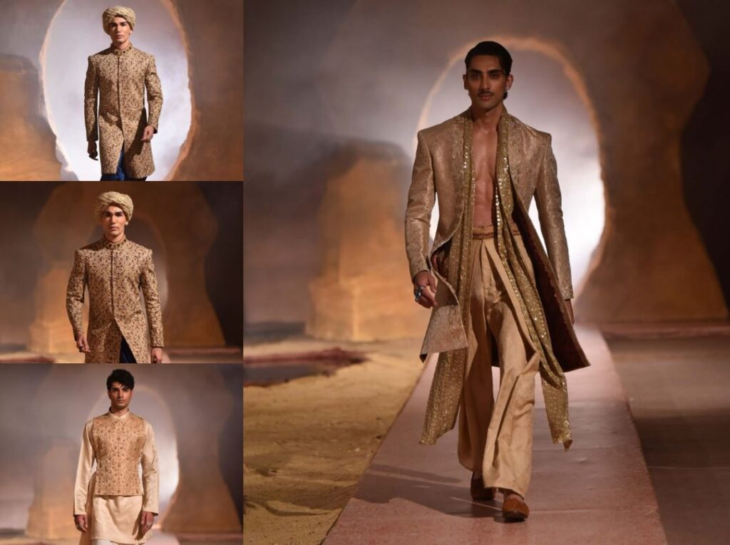 The Nakhlistan Summer 2025 collection showcased earthy desert tones, soft pastels, and dramatic blacks. Designs moved between flowing drapes and structured tailoring, highlighting both strength and grace. Standout features included asymmetrical embroidery, silk linings with custom motifs, and detailed craftsmanship—hallmarks of Parishae’s commitment to authenticity and artistic excellence.