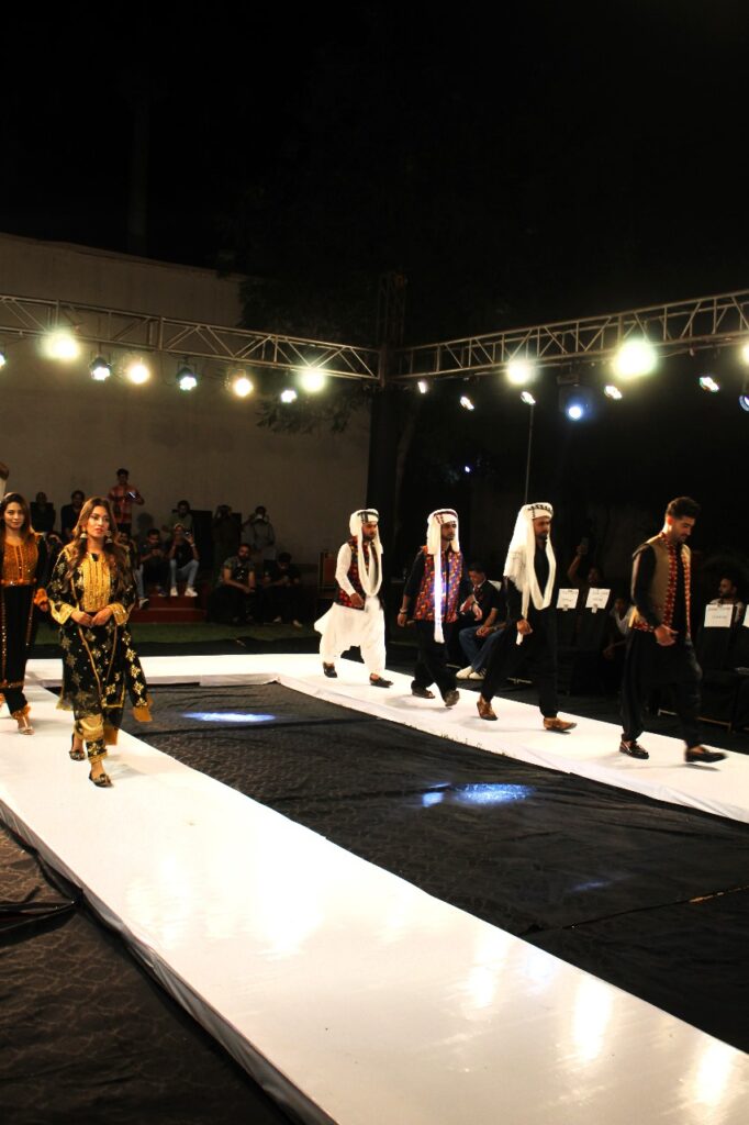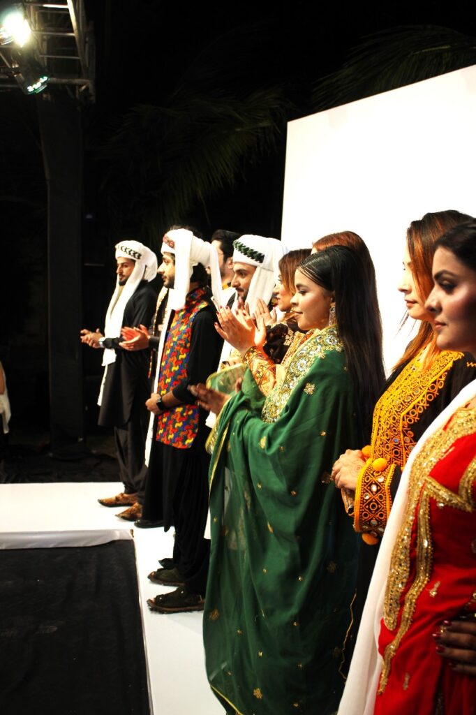 The grand finale by Jan Bibi Collection celebrated traditional Balochi embroidery, enhanced with gold thread metallic accents. The intricate designs and luxurious fabrics created a visually stunning conclusion to the show.