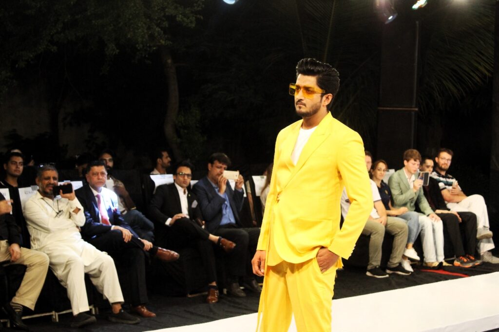Lahore-based singer Ayyan Superstar provided a lively performance, followed by a hair trends segment presented by Ilyas Salon. Umair Ilyas of Uzi Bros. impressed with heavily embellished men’s sherwanis in pastel shades, complemented by flashy turbans and traditional footwear.