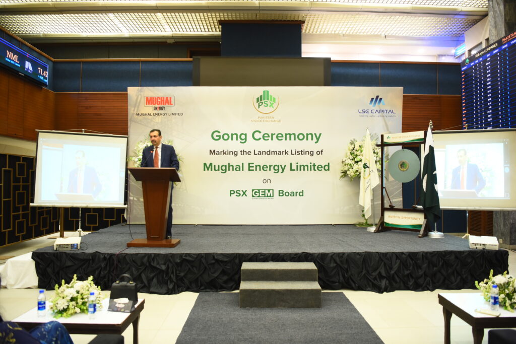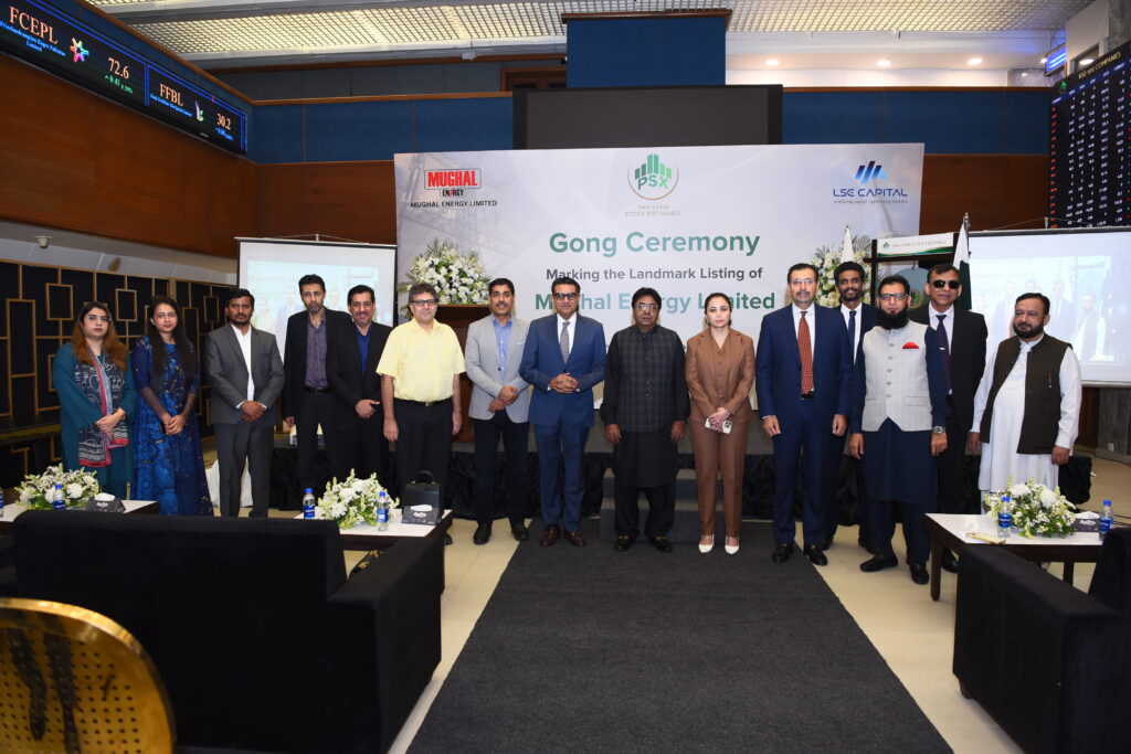 A gong ceremony was held at Pakistan Stock Exchange (PSX) to celebrate the listing of Mughal Energy Limited (MEL) on its Growth Enterprise Market (GEM) Board. Mughal Energy is the fourth listing on the GEM Board of PSX since the Board was launched in 2020. The GEM Board is a listing platform to facilitate capital raising needs and listing of small, medium or greenfield businesses on the Stock Exchange.