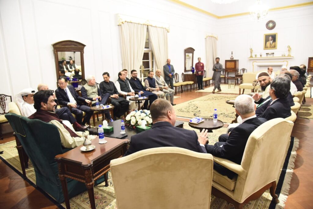 Mohammed Kamran Khan Tessori, Governor of Sindh known as Awami Governor (Public Governor) once again created history in the Governor House during the Eid get together when Consul General of China and United States sat together with Consul General of Russia at the front, Turkiye, Japan and France with Middle East’s Peace Mediator Kuwait’s Consul General next to Governor. The topic of discussion of diplomats remained International Politics and efforts of Governor Tessori who made history in Governor House with Sacrificing of 100 Camels and distribution of it’s meat along with 20,000 grocery (Rashan Boxes) during the three days of the Eid ul Adha at the Governor House.