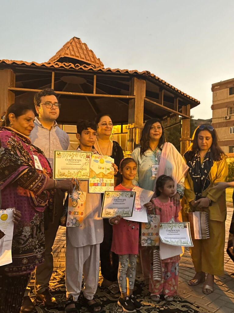 The evening concluded with a vote of thanks and an announcement of upcoming plantation drives in Korangi, Hill Park, and Thar. Attendees then enjoyed refreshments, with children eagerly grabbing pakoras and samosas to celebrate the successful event.