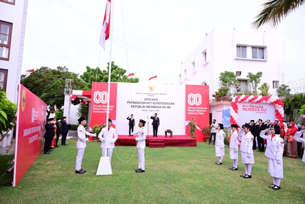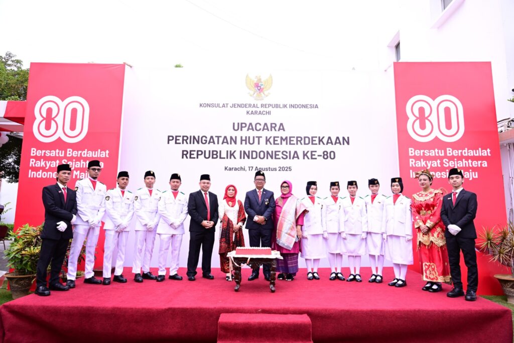 Karachi: The Consulate General of the Republic of Indonesia in Karachi commemorated the 80th Anniversary of Indonesia’s Independence with a flag hoisting ceremony on Sunday morning. The event was presided over by Dewanto Priyokusumo, Charge d’Affaires, and attended by Indonesian citizens living in Karachi, including students and mixed-married families of Indonesian and Pakistani descent.