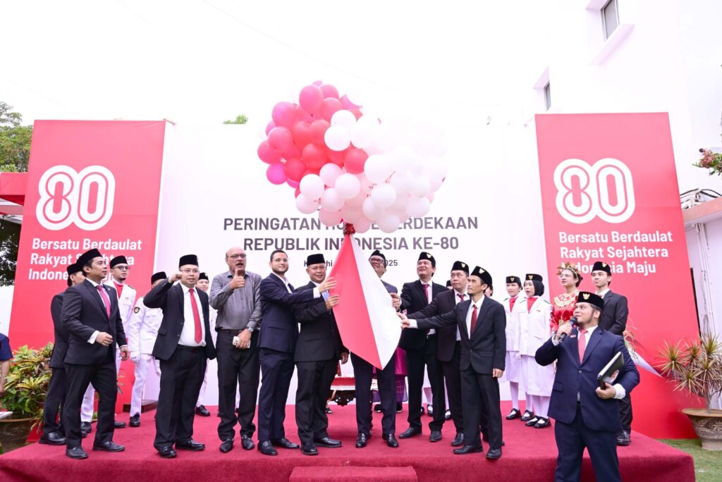 This year’s celebration carried the theme “Bersatu Berdaulat Rakyat Sejahtera Indonesia Maju” — meaning “United, Sovereign, Prosperous People for a Progressive Indonesia.” The ceremony reflected solemn respect for the nation’s independence and its ongoing journey of progress.