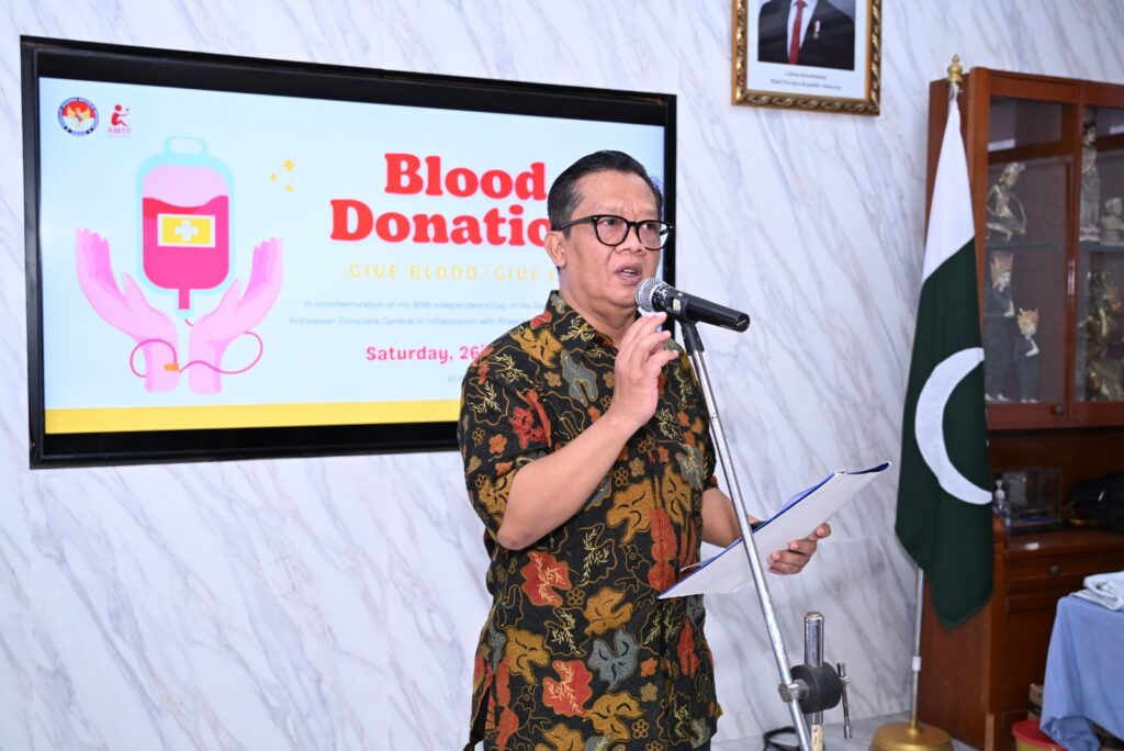 Karachi: The Indonesian Consulate General in Karachi organized a blood donation camp in collaboration with the Afzaal Memorial Thalassemia Foundation (AMTF), as part of its annual celebrations for Indonesia’s Independence Day, observed every year on August 17. This year marks the 80th anniversary of the country’s independence.