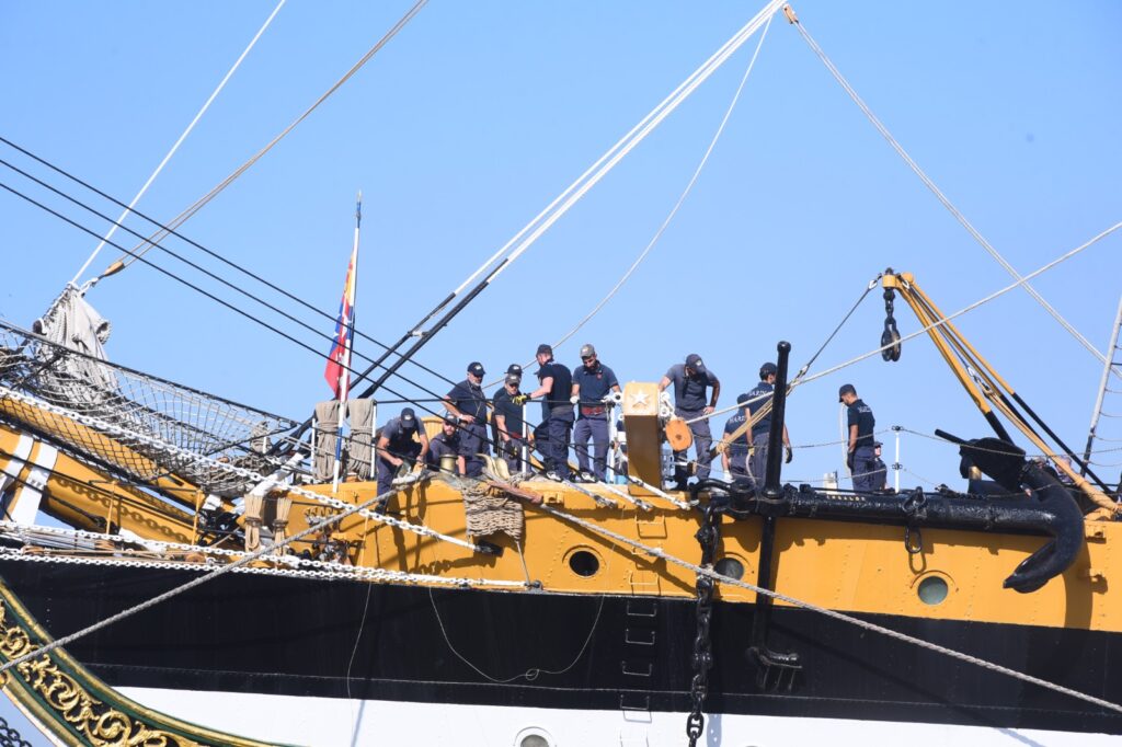 Commanded by Captain Giuseppe Lai, the Amerigo Vespucci is the longest-serving vessel in the Italian Navy. It has trained generations of naval officers, many of whom went on to lead Italy’s maritime forces. The ship’s traditional sailing propulsion, complemented by modern diesel-electric systems, demonstrates a commitment to environmental sustainability.