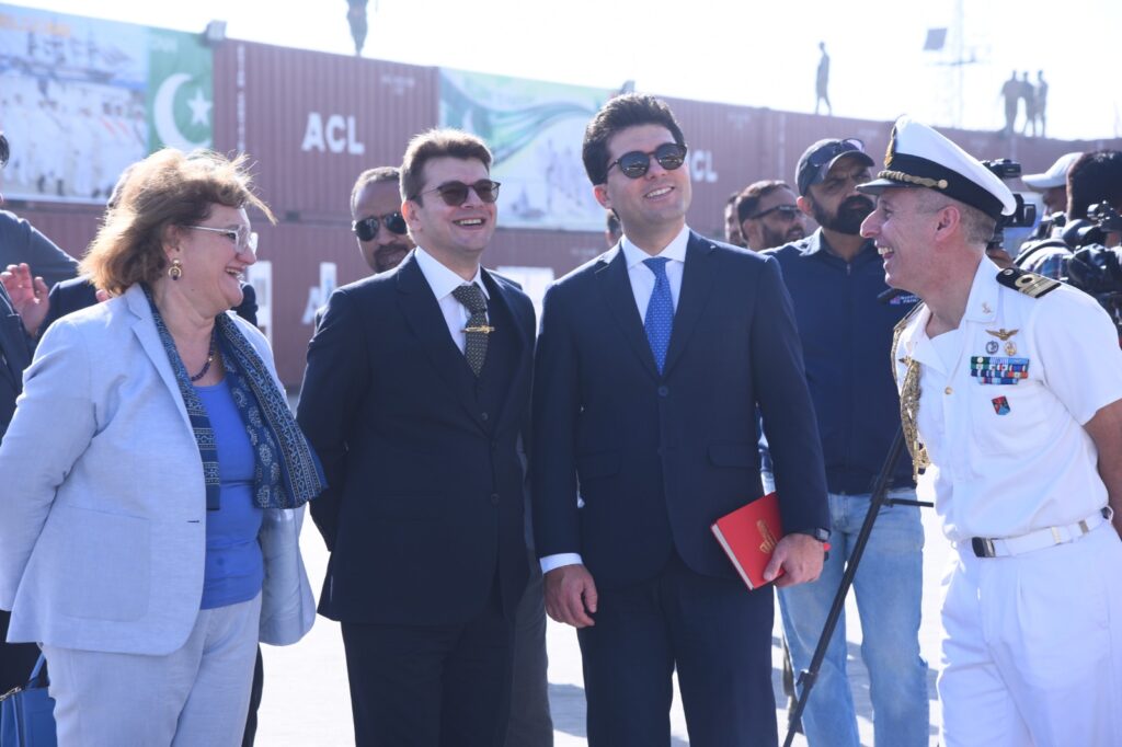 They were joined by local government dignitaries, military authorities, and representatives from Pakistan’s maritime and cultural sectors. The atmosphere was charged with excitement as the arrival symbolized a bridge of friendship between Italy and Pakistan.