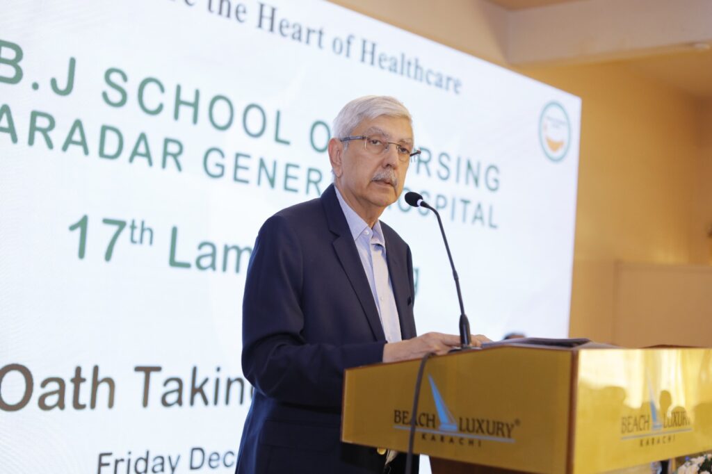 Renowned industrialist and philanthropist Muhammad Bashir Jan Muhammad discussed the importance of investment in education and healthcare. He urged the capitalist class to serve humanity and help improve the conditions of the underprivileged. According to him, society needs quality education and accessible healthcare. He further emphasized that the only way to achieve health goals is by advancing the nursing sector.