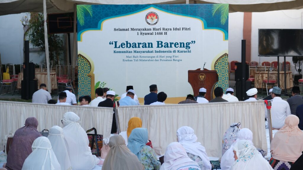 Karachi: The Consulate General of the Republic of Indonesia (KJRI) in Karachi marked the joyous occasion of Eid-al-Fitr, falling on 1 Syawal 1446 H, by organizing a special gathering for the Indonesian Community. Approximately 250 participants, including Indonesian citizens, students, and several foreign nationals married to Indonesians, attended the event which featured Eid prayers followed by a traditional Halal Bihalal celebration.