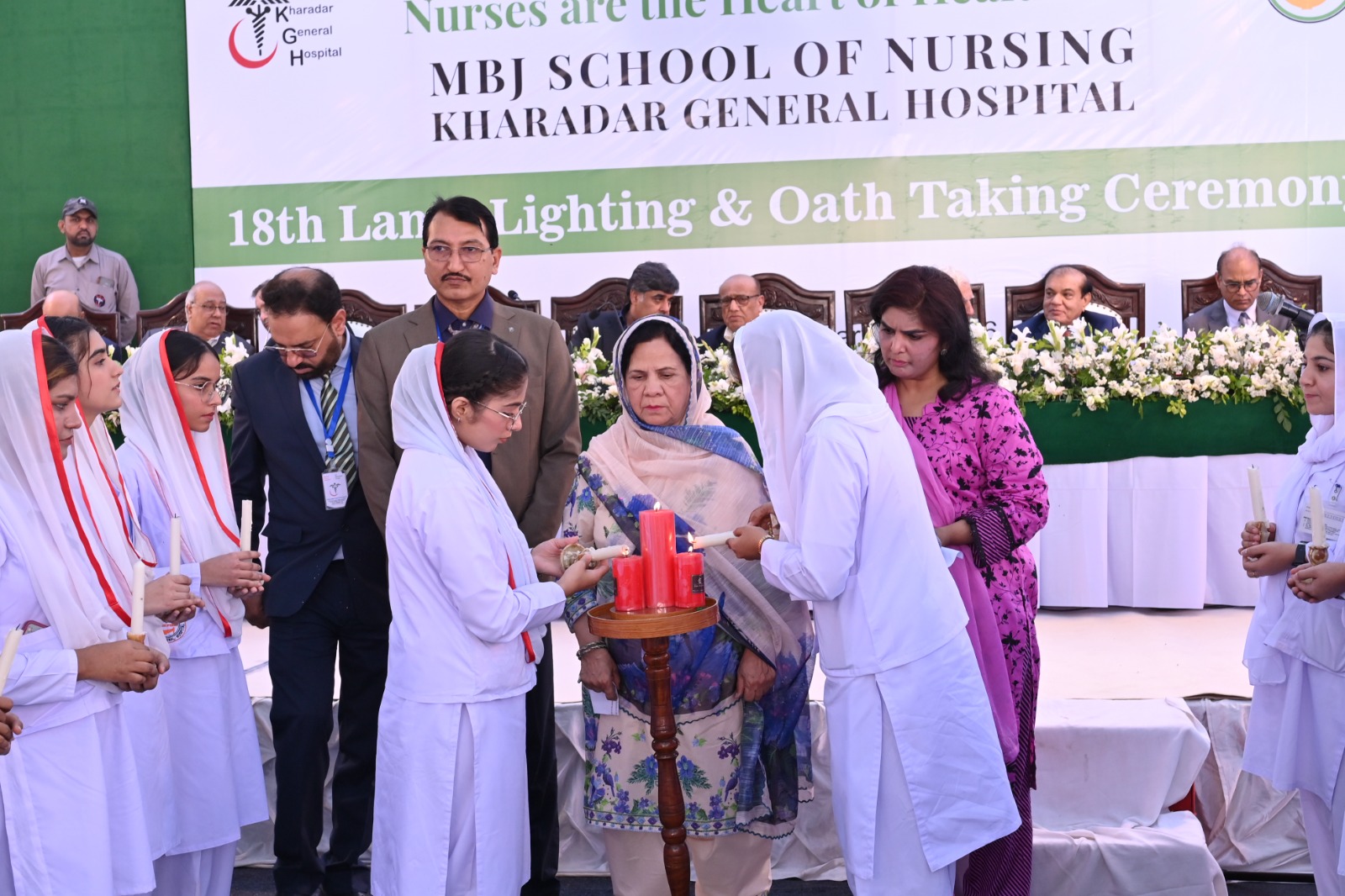 Karachi: The 18th Lamp Lighting and Oath-Taking Ceremony of the MBJ School of Nursing at Kharadar General Hospital was held this week, marking a significant milestone for the graduating cohort and reaffirming the institution’s commitment to healthcare education.
