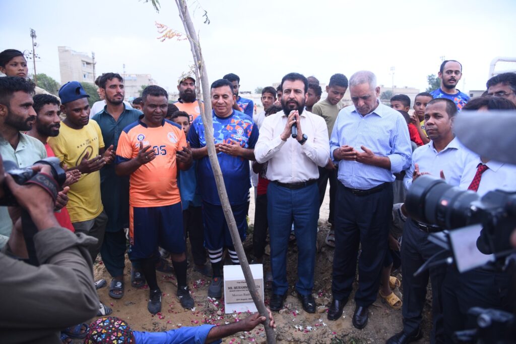 Karachi: Meezan Bank recently organized a tree plantation drive at the Shaheed Benazir Bhutto Football Ground in Gulbai, Karachi, reinforcing its commitment to environmental sustainability. The event began with an exciting exhibition match between the Meezan Bank team and the Gulbai team, fostering community spirit and encouraging healthy lifestyles.