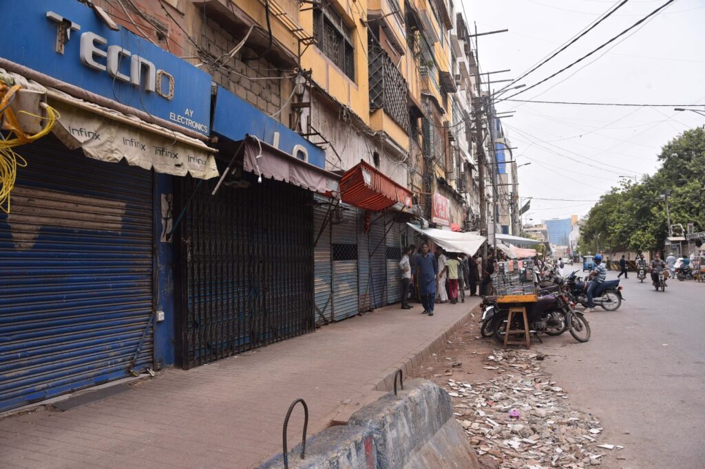 Notable Karachi markets and trade zones that shut down include: