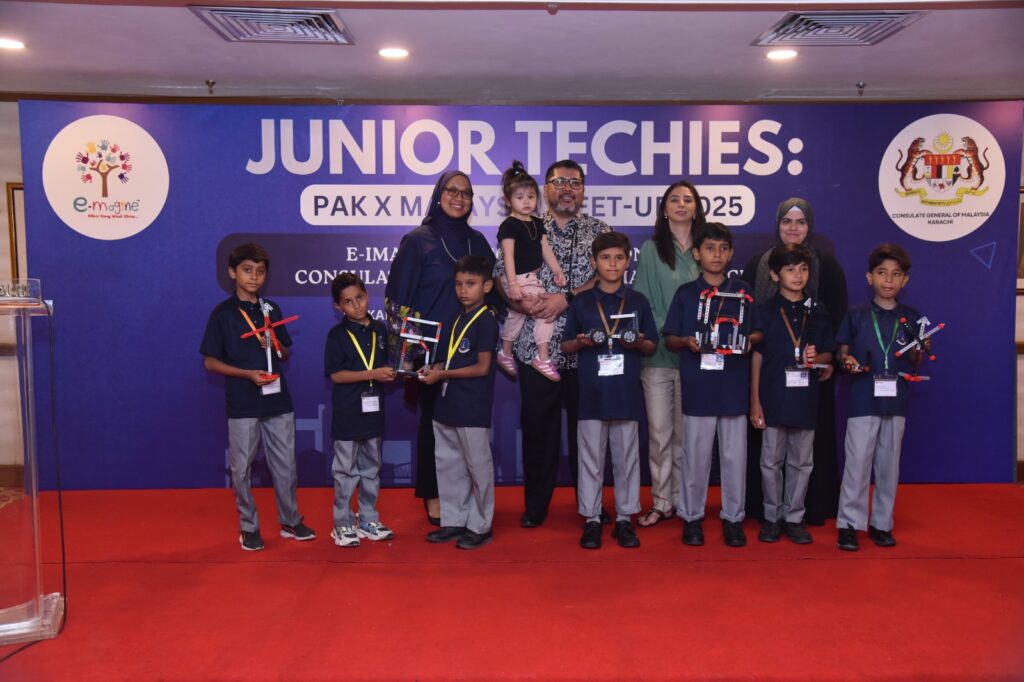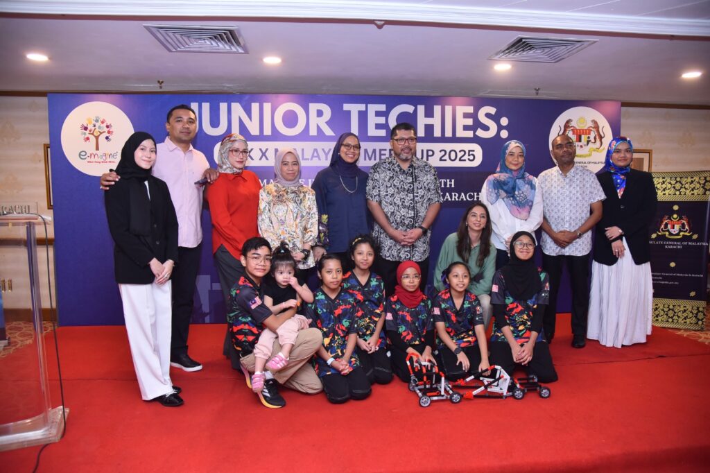 Karachi: In a vibrant display of creativity and cross-cultural collaboration, the Consulate General of Malaysia in Karachi, in partnership with e-Magine and Manzil Educational Organization School, hosted the ‘Junior Techies: Pak x Malaysia Meet-up 2025’ at Marriott Hotel, Karachi.