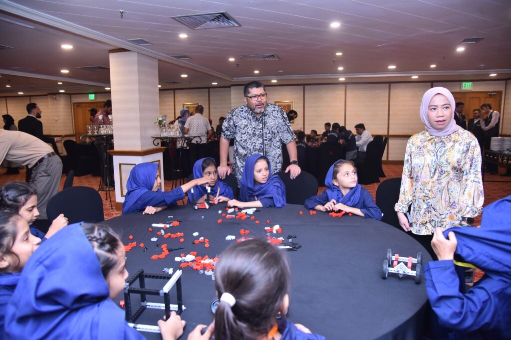 The event brought together 35 students from Manzil Educational Organization and children of the Consulate’s home-based staff (HBS). Participants were provided with robotic kits and tasked with building robotic creations within one hour, working in teams to explore their creativity and innovation.