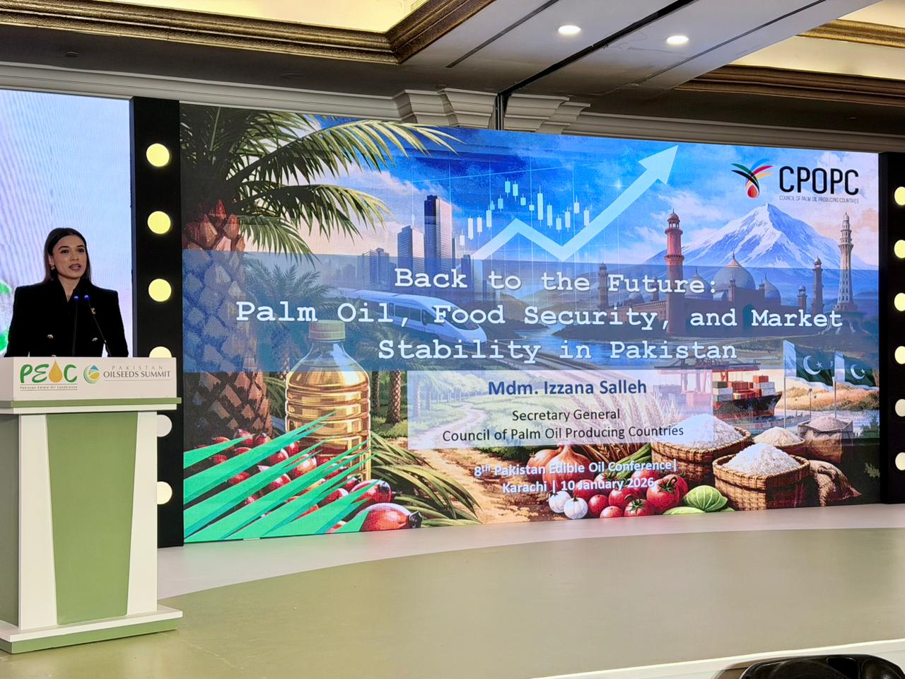 A central feature of the mission was an address by CPOPC Secretary General Madam Izzana Salleh at the 8th Pakistan Edible Oils Conference (PEOC 2026). She described Pakistan as a “strategic partner” in the global palm oil ecosystem, noting that the country consumes about 4.3 per cent of global palm oil supply and imports nearly 3.3 million tonnes annually.
