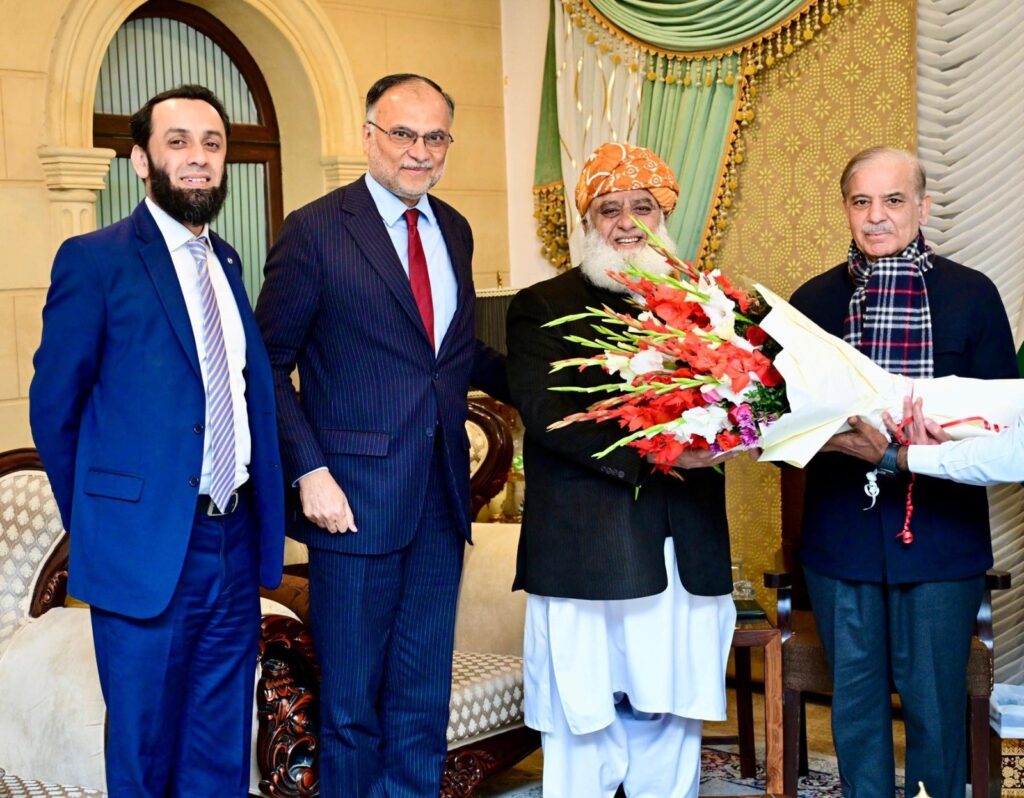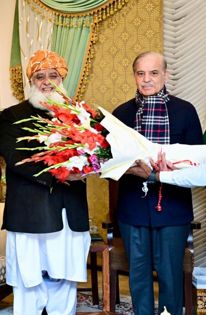 Islamabad: Prime Minister Shehbaz Sharif visited the residence of Maulana Fazlur Rehman, Chief of Jamiat Ulema-e-Islam (F), on Thursday to inquire about his health. During the visit, the prime minister extended his prayers for Maulana Fazl’s recovery.