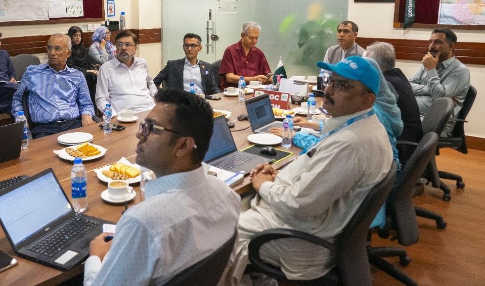 The meeting was chaired by EOC Coordinator Irshad Sodhar, and attended by WHO Team Lead Dr. Asif Ali, UNICEF Team Lead Dr. Shokat Ali, N-STOP Team Lead Dr. Shumaila Rasool, and other EOC officers.
