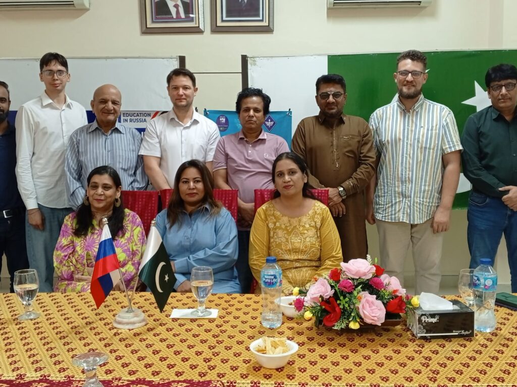 The visiting delegation, led by Dr. Roman Porozov and Anton Dolgov, held discussions with local journalists and academics to promote educational cooperation between Pakistan and Russia. The initiative is being organized by the Russian Ministry of Education, USPU, the Foundation for the Support of the Humanities “My Story”, and the Russian House in Karachi.