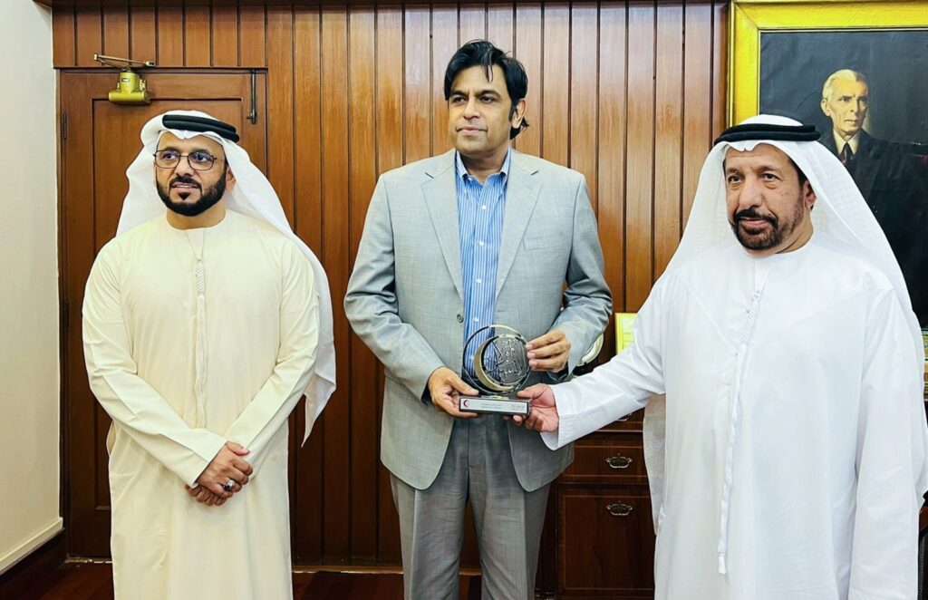 Karachi: Secretary General of Red Crescent UAE Rashid Mubarak Al Mansoori has said that Red Crescent is playing an important role in the health and education sector in Pakistan. He expressed these views during a meeting with Chief Secretary Sindh Syed Asif Haider Shah along with a seven-member delegation headed by UAE Consul General Bakhit Atiq al-Rumiti. During the meeting, Chief Secretary Sindh was briefed about the projects in Pakistan. Earlier, the UAE Consul General Bakhit Atiq al-Rumiti expressed his views and said that the UAE government is aware of all the difficulties of the Pakistani people and in this context they are building a modern hospital in Larkana and a housing Scheme for the flood victims in Dadu. On this occasion, Chief Secretary Sindh appreciates the efforts of UAE in health and housing sectors and said that we value relationships with UAE. Chief Secretary was also presents honorary shield to Consul General Bakhit Atiq al-Rumiti and Secretary General Rashid Mubarak Al Mansoori.