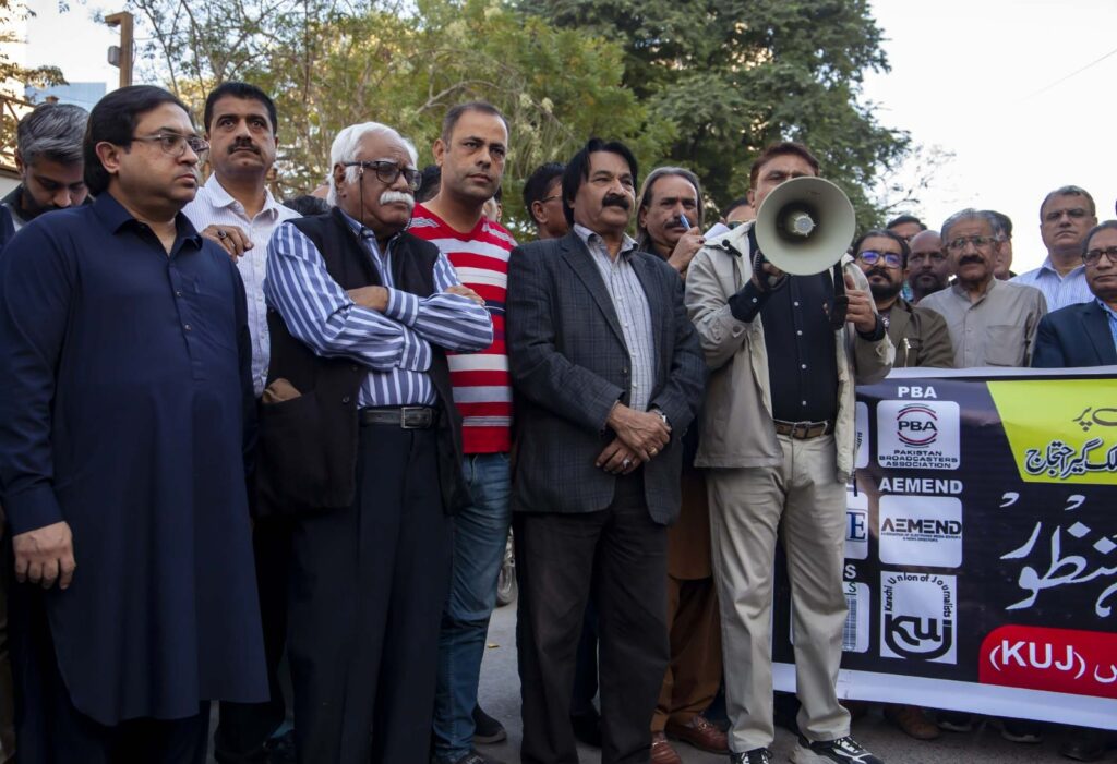 Protests erupted in major cities, including Islamabad, Karachi, Lahore, Quetta, and Faisalabad. The Pakistan Federal Union of Journalists (PFUJ) led the nationwide protests, decrying the bill as a threat to media freedom. In Faisalabad, protesters displayed banners reading “Black law unacceptable,” while similar protests in Karachi and Islamabad involved journalists wearing handcuffs or chaining themselves to demonstrate their fear of censorship.