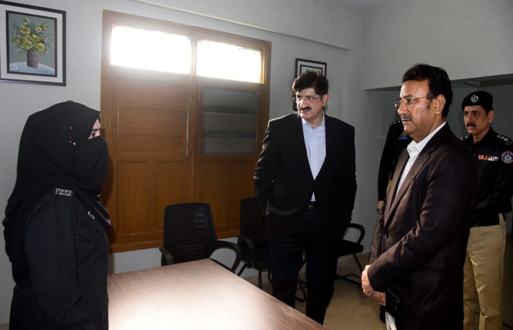 KARACHI: Sindh Chief Minister Syed Murad Ali Shah, along with Home Minister Zaiul Hassan Lanjar, visits the Ladies’ Room at Risala Model Police Station to assess the facilities available for women.