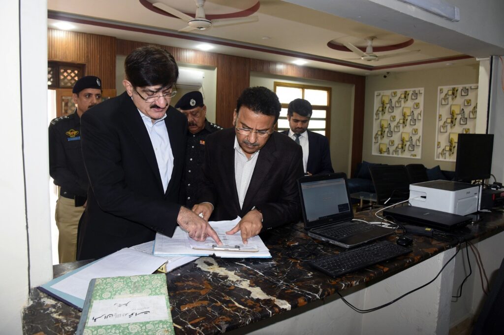 Karachi: Sindh Chief Minister Syed Murad Ali Shah, accompanied by Home Minister Zaiul Hassan Lanjar, conducted surprise inspections at the Deputy Commissioner’s office in Keamari and the Risala Model Police Station on Sunday.