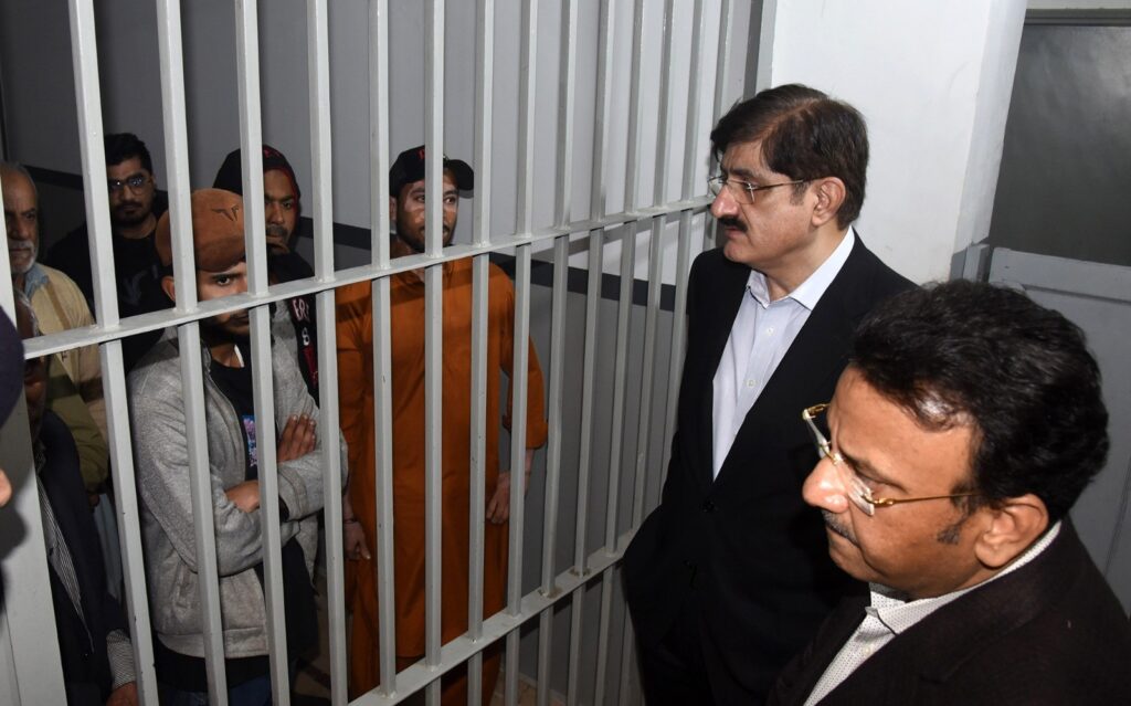 KARACHI: Sindh Chief Minister Syed Murad Ali Shah, joined by Home Minister Zaiul Hassan Lanjar, inspects the lock-up facilities at the Risala Model Police Station.