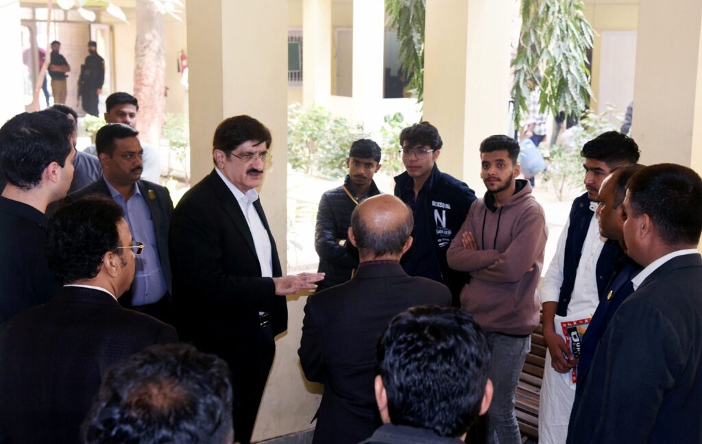 KARACHI: Sindh Chief Minister Syed Murad Ali Shah interacts with young individuals waiting for their domicile certificates at the Deputy Commissioner Office in Keamari.