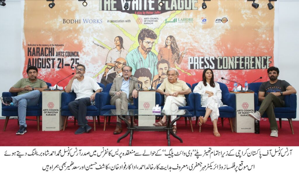 Karachi: Arts Council of Pakistan Karachi and Bodhi Works (Film and Theater Company) organized a press conference regarding the theatre play “The White Plague,” at Haseena Moin Hall. President Arts Council of Pakistan Karachi.