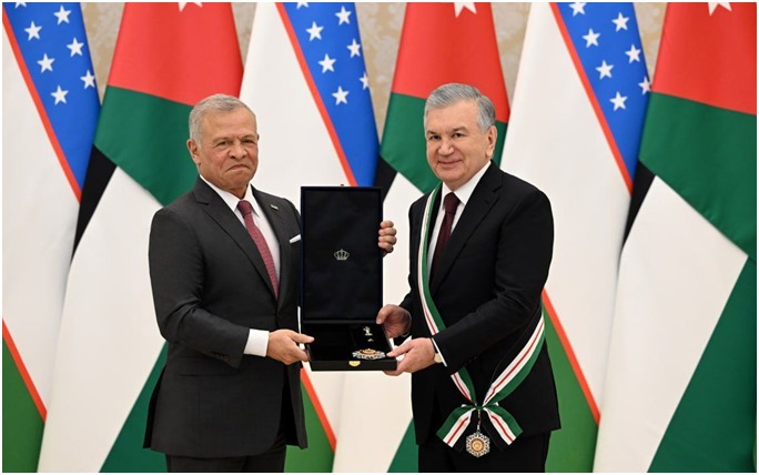 In recognition of his role in strengthening bilateral relations, President Shavkat Mirziyoyev was awarded Jordan’s highest state honor, the Order of Al Nahda (Renaissance), personally conferred by King Abdullah II.